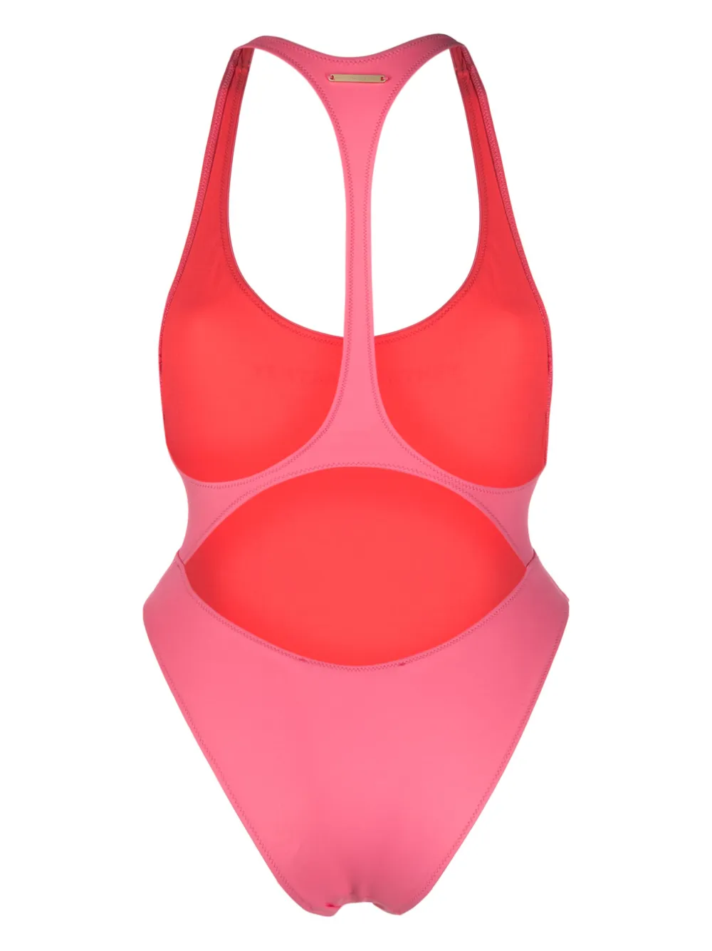 Blush roze, koningsblauw, stretch design, logoprint op de voorkant, uitgesneden detail , ronde hals, mouwloos en racerback. Zwemkleding moet over je eigen kleding worden aangepast.. . .