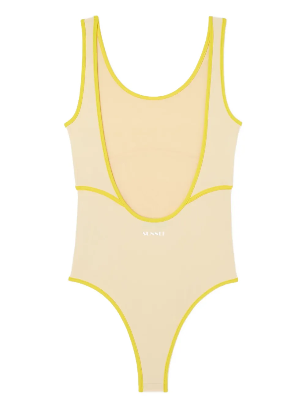 lichtgeel diepe ronde hals limoengroen mouwloos Zwemkleding moet over je eigen kleding worden aangepast.