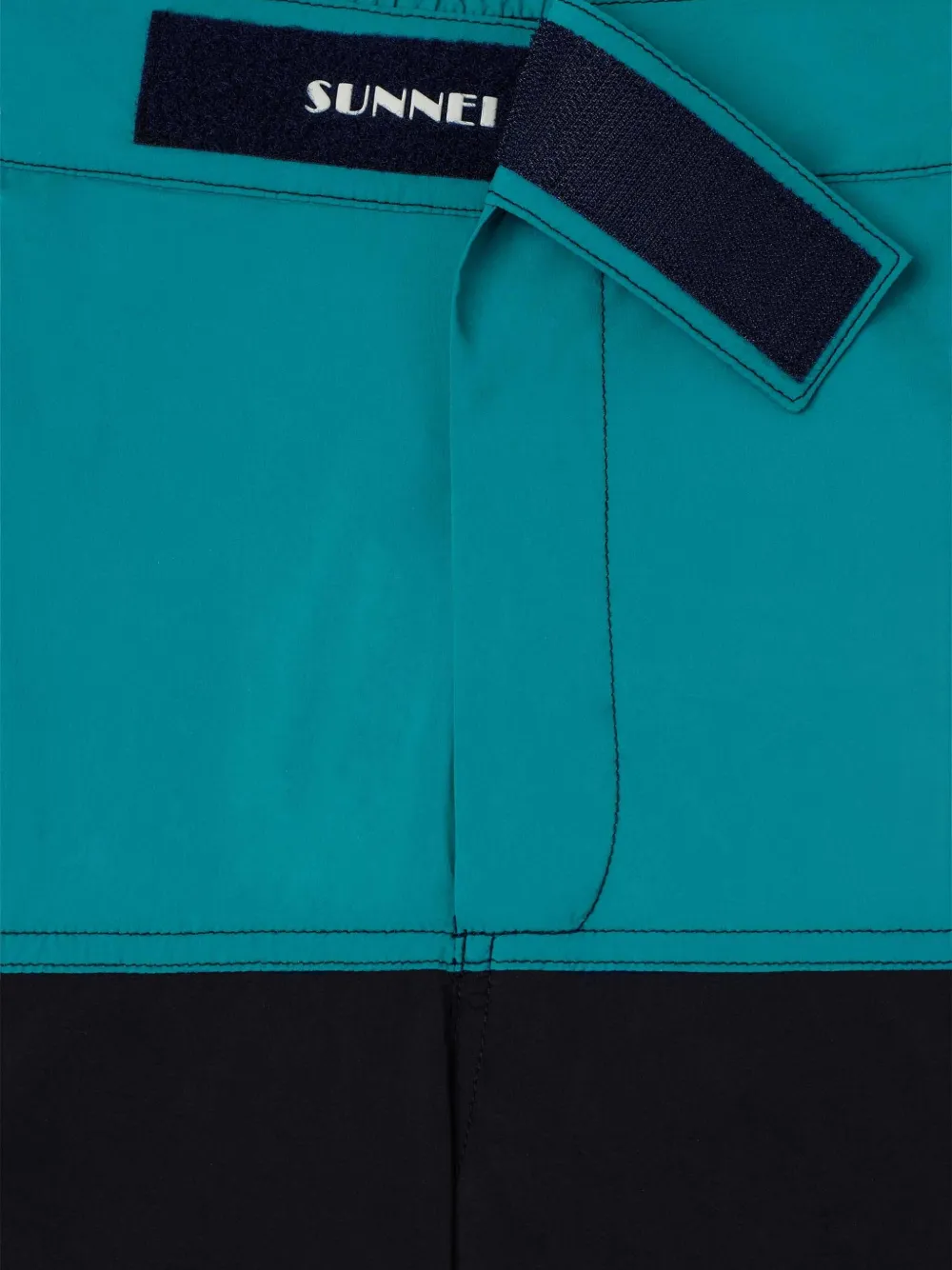 blauwgroen blauw horizontale zwarte streep horizontale gele streep haak- en lussluiting rechte zoom Zwemkleding moet over je eigen kleding worden aangepast.