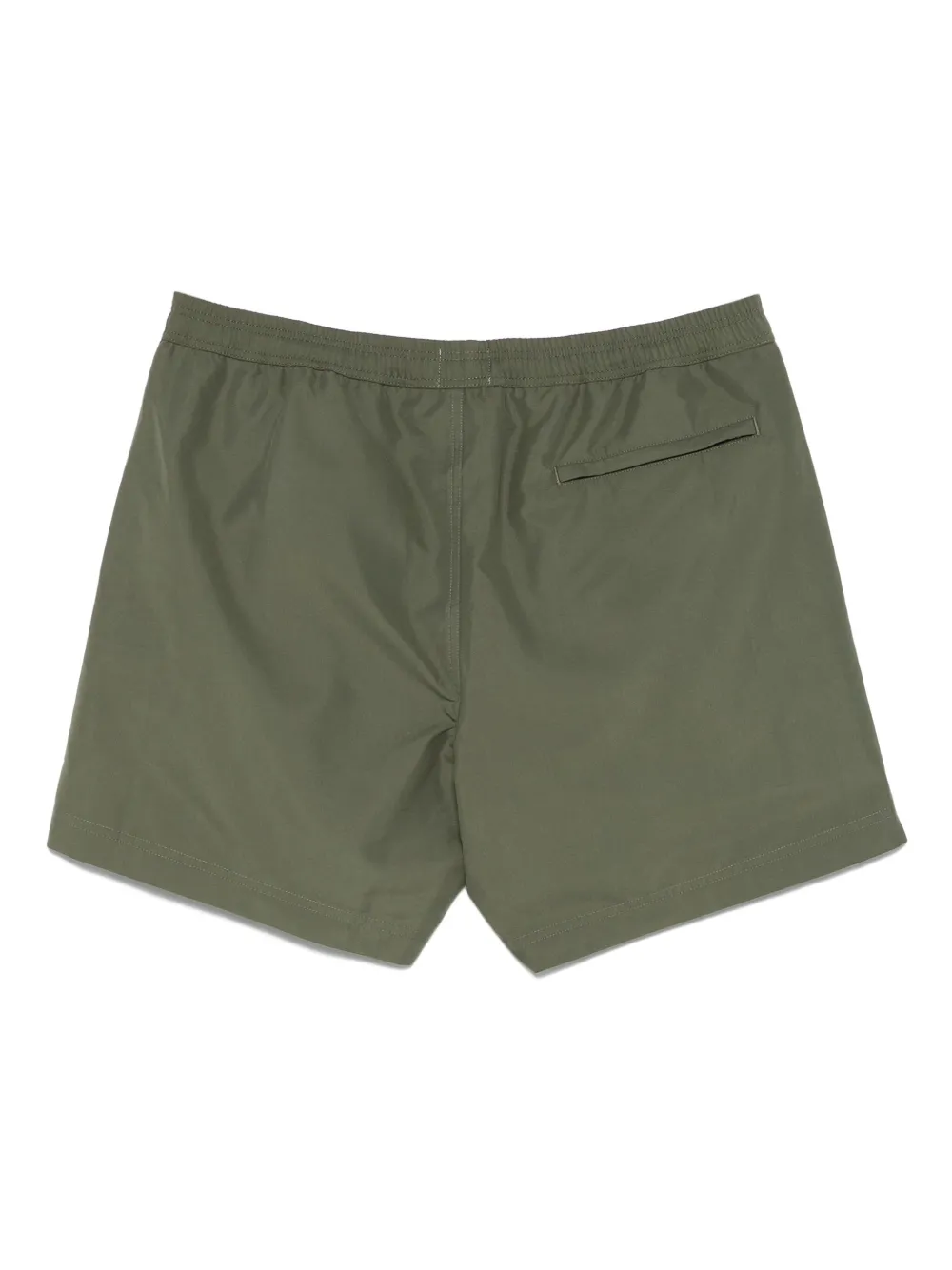 bosgroen elastische tailleband twee steekzakken aan de zijkant paspelzak aan de achterkant Zwemkleding moet over je eigen kleding worden aangepast.