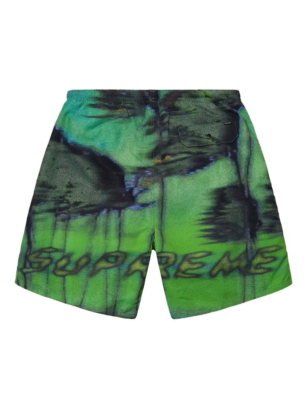 groen elastische tailleband trekkoordsluiting klepzak aan de achterkant logodetail Zwemkleding moet over je eigen kleding worden aangepast.