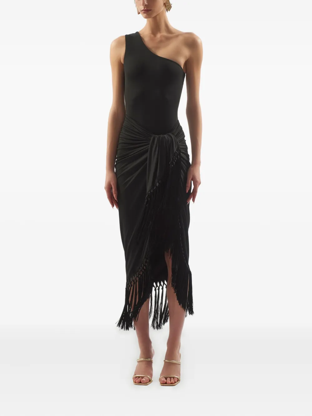 zwart asymmetrisch design getailleerde body Zwemkleding moet over je eigen kleding worden aangepast.
