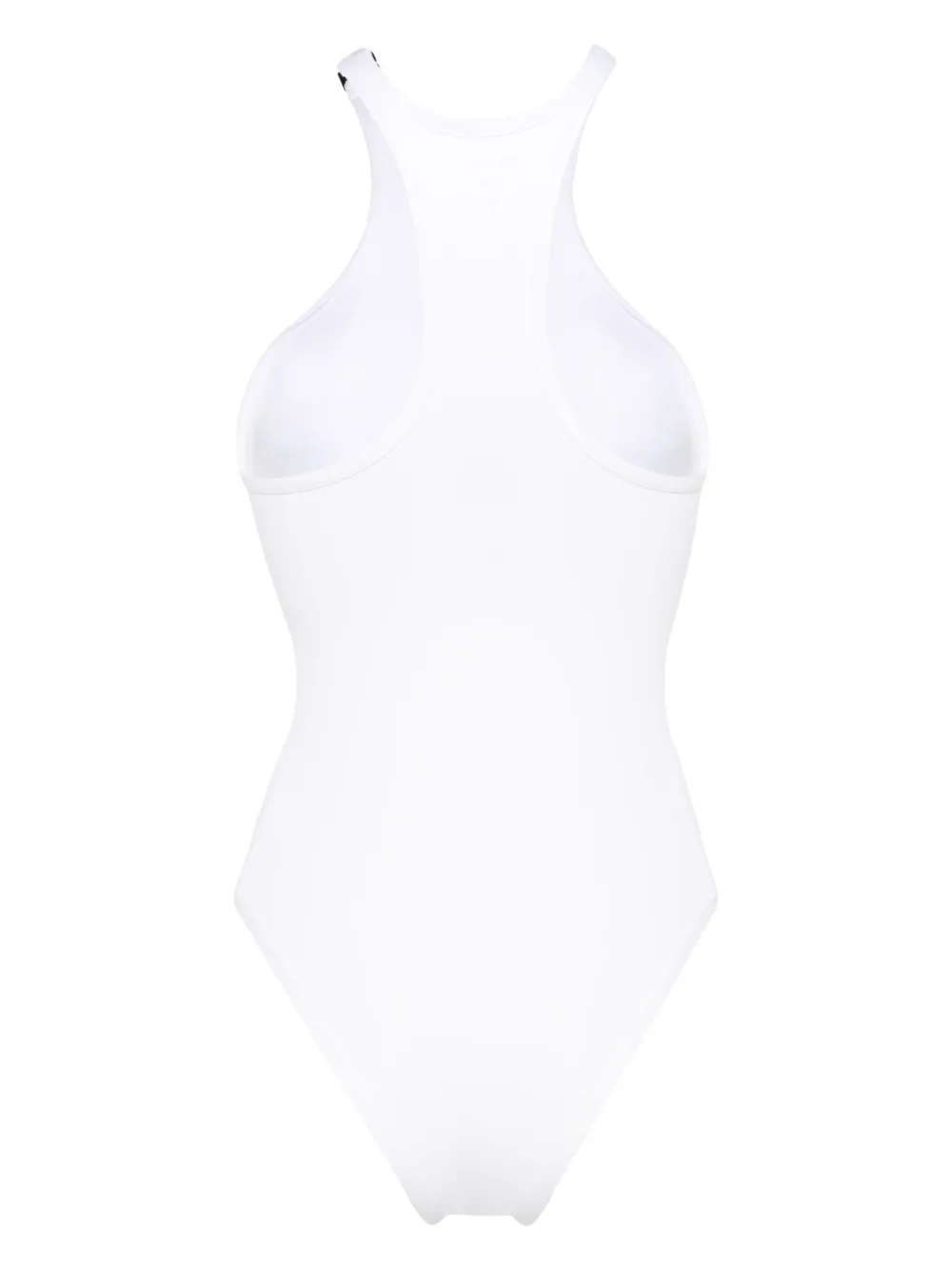wit stretch-jersey zilverkleurig logoplakkaat ronde hals volledige voering Zwemkleding moet over je eigen kleding worden aangepast.