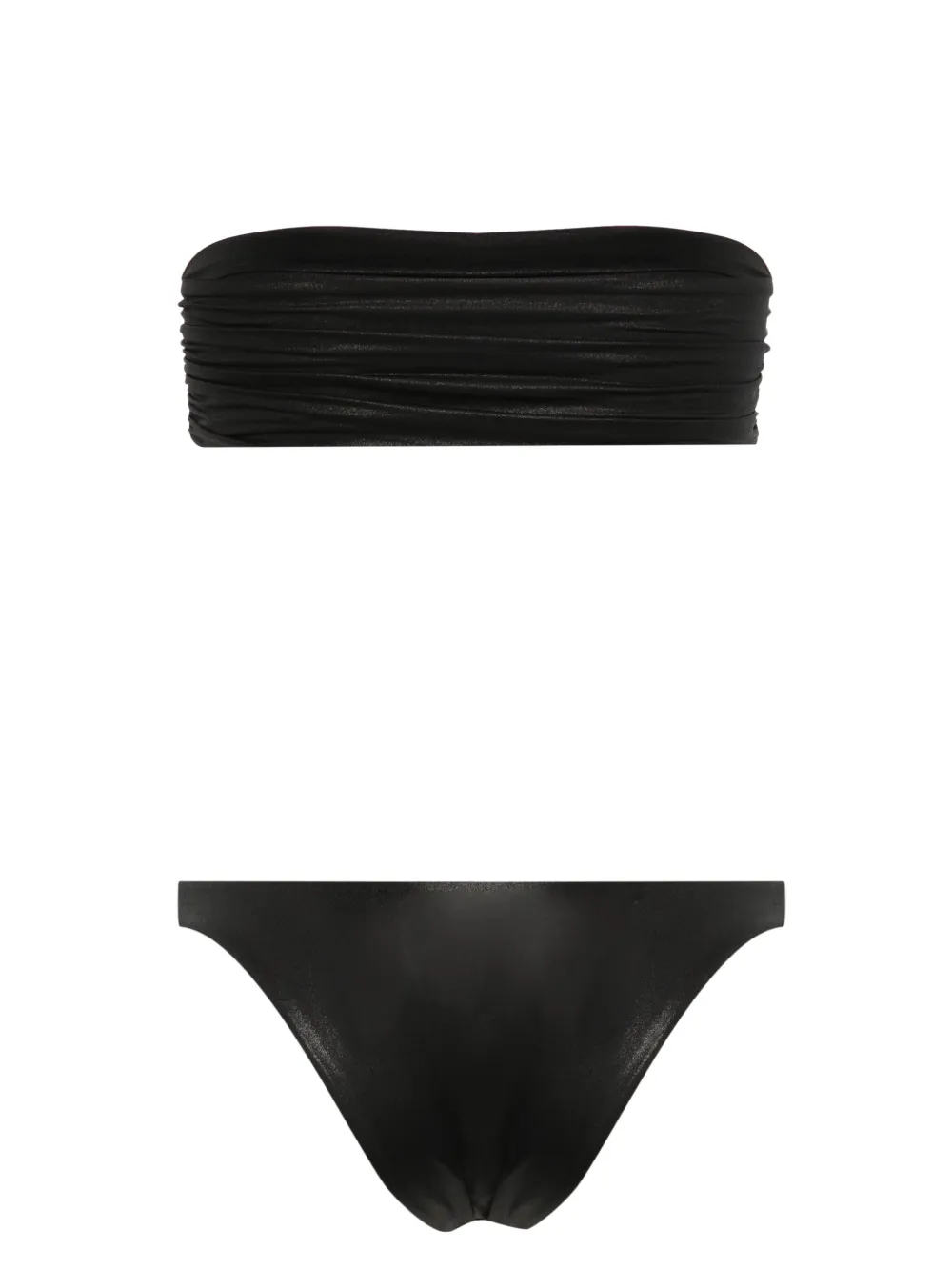 zwart stretch design Top: bandeau gesmockte details gedrapeerd detail volledige voering Broek: rubberen logodetail op de voorkant hoog uitgesneden volledige voering instapmodel Zwemkleding moet over je eigen kleding worden aangepast.