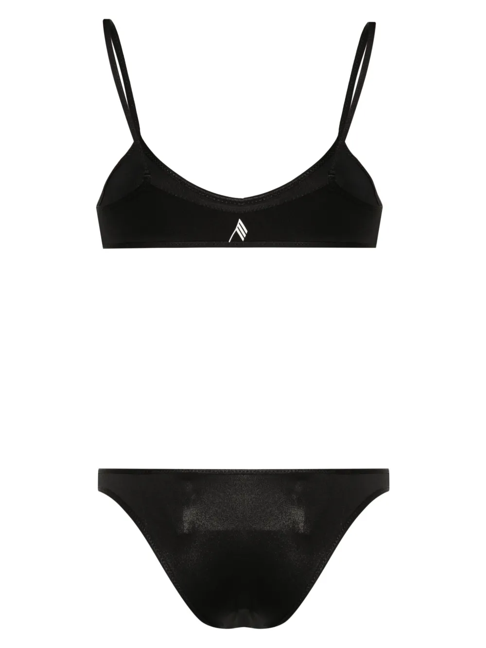 zwart stretch design Top: rubberen logodetail aan de achterkant ronde hals dunne schouderbandjes mouwloos instapmodel Broek: rubberen logodetail op de voorkant mid waist hoog uitgesneden volledige voering instapmodel Zwemkleding moet over je eigen kleding worden aangepast.