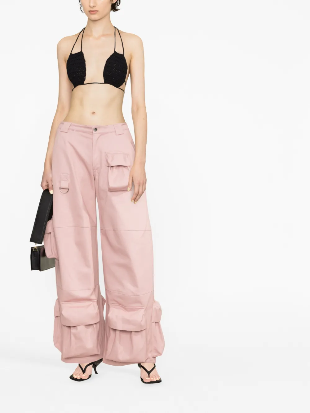 Zwart, gebreid materiaal, halternek striksluiting, striksluiting aan de achterkant en open rug. Zwemkleding moet over je eigen kleding worden aangepast..
