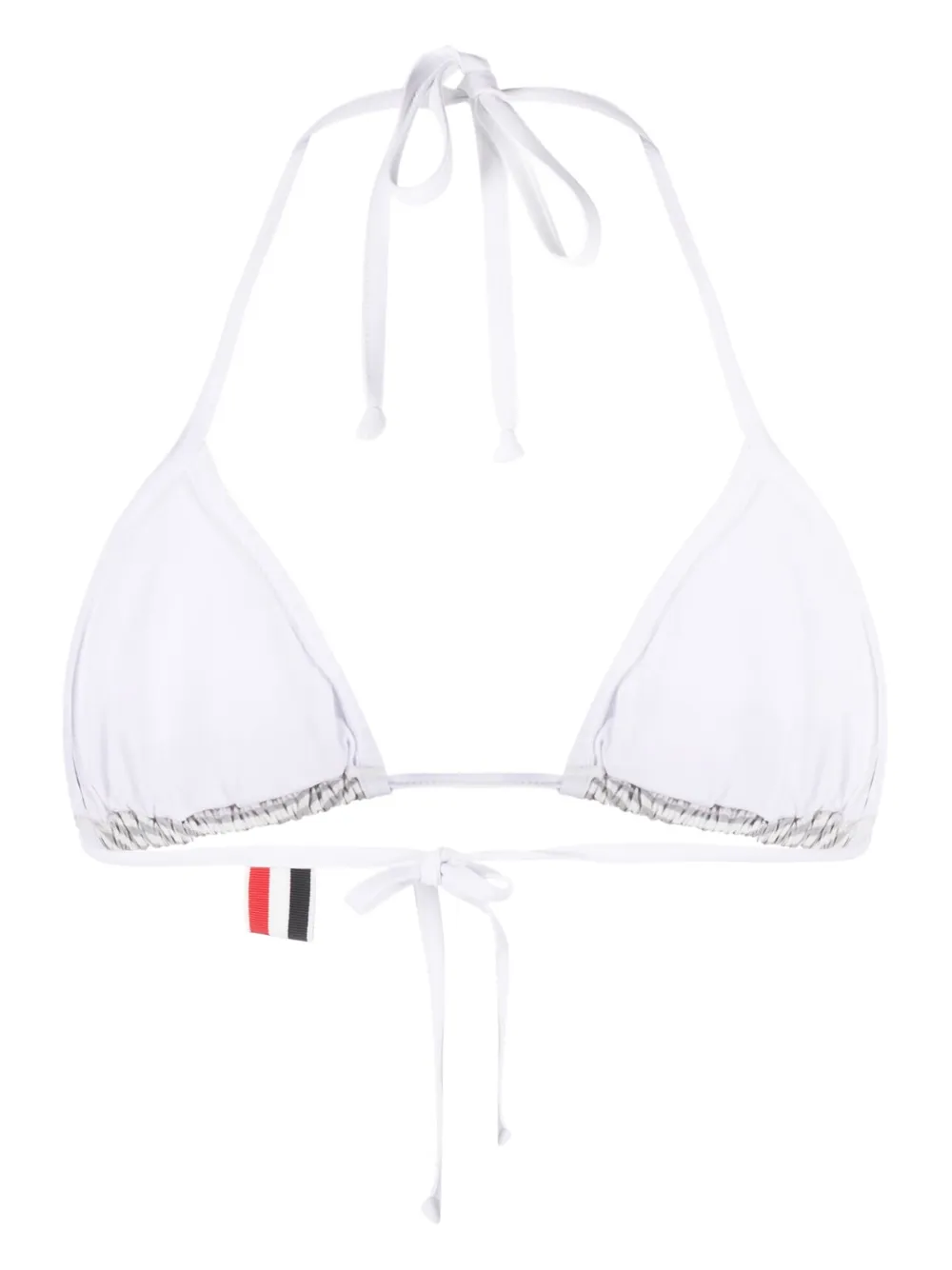 Optisch wit, stretch design, driehoekige vorm, kenmerkend 3-Stripes logo, logopatch aan de achterkant, halternek striksluiting en striksluiting aan de achterkant. Zwemkleding moet over je eigen kleding worden aangepast..