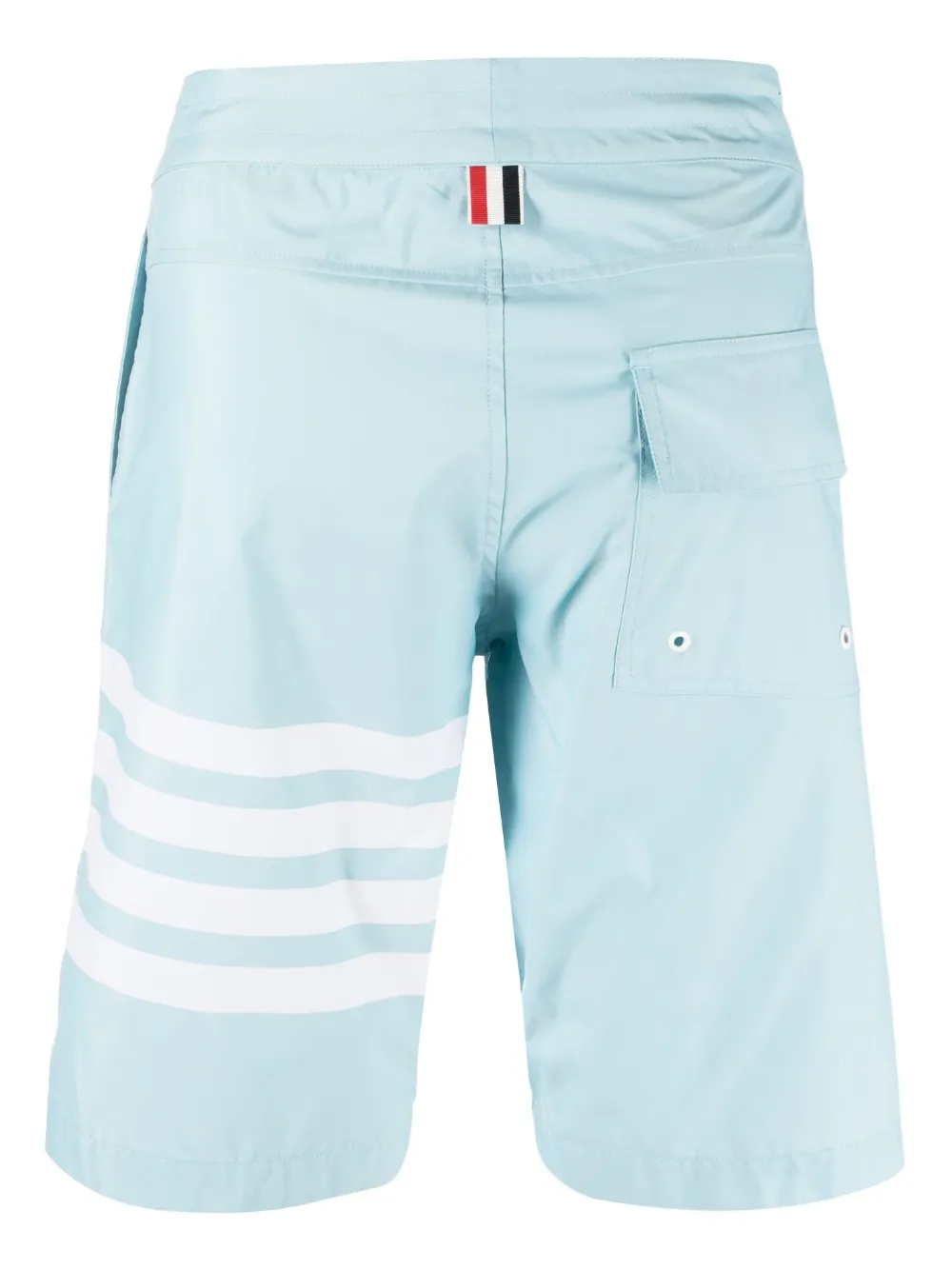 Lichtblauw, wit, kenmerkende 4-Bar streep, logopatches aan de voorkant, kenmerkend lusje, trekkoordsluiting bij de taille, twee steekzijzakken, achterzak met klep en knielengte. Zwemkleding moet over je eigen kleding worden aangepast..