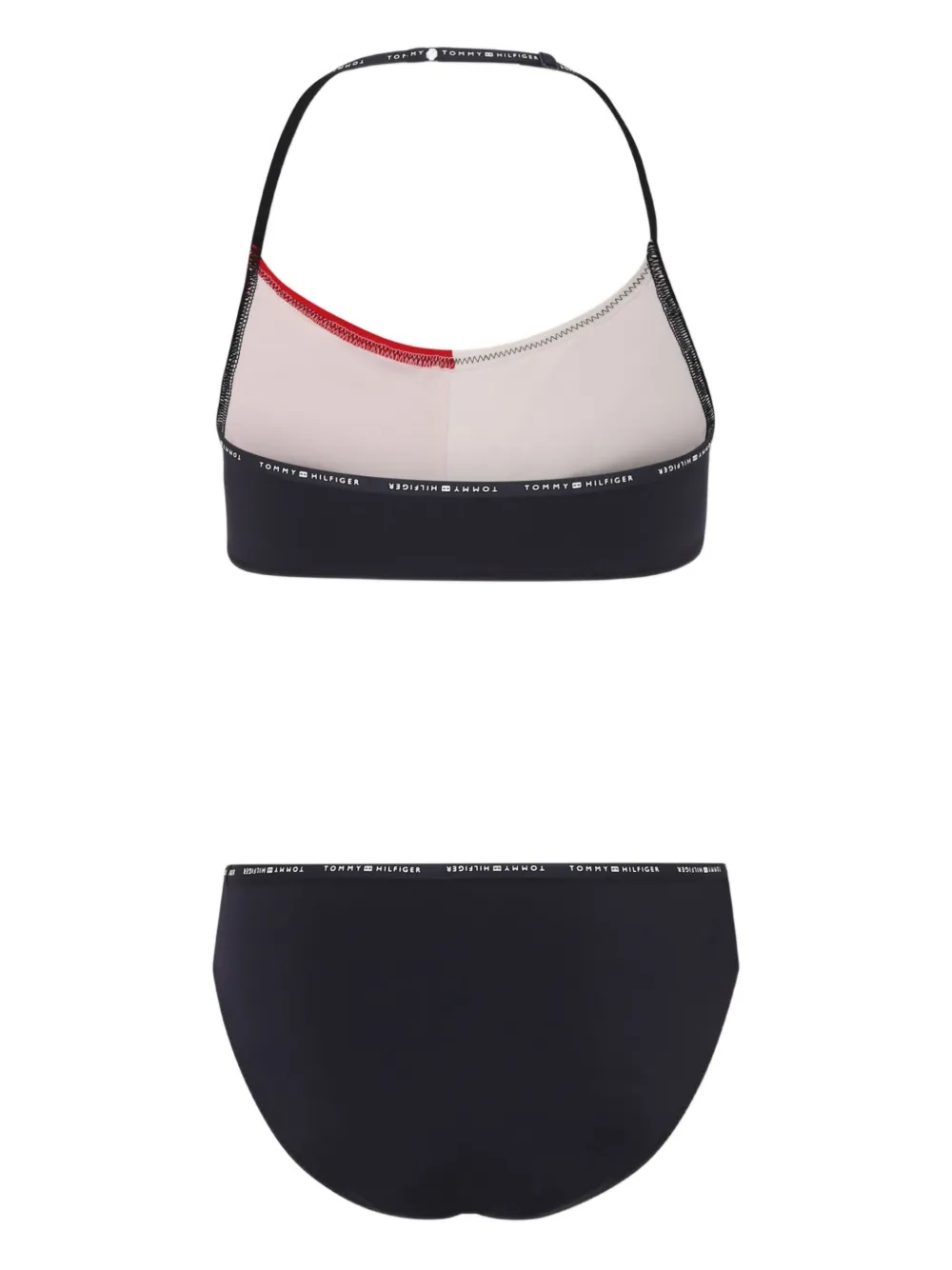 rood/wit/marineblauw halterneksluiting logodetail contrasterende vlakken verstelbare bandjes low waist bikinibroek Zwemkleding moet over je eigen kleding worden aangepast.