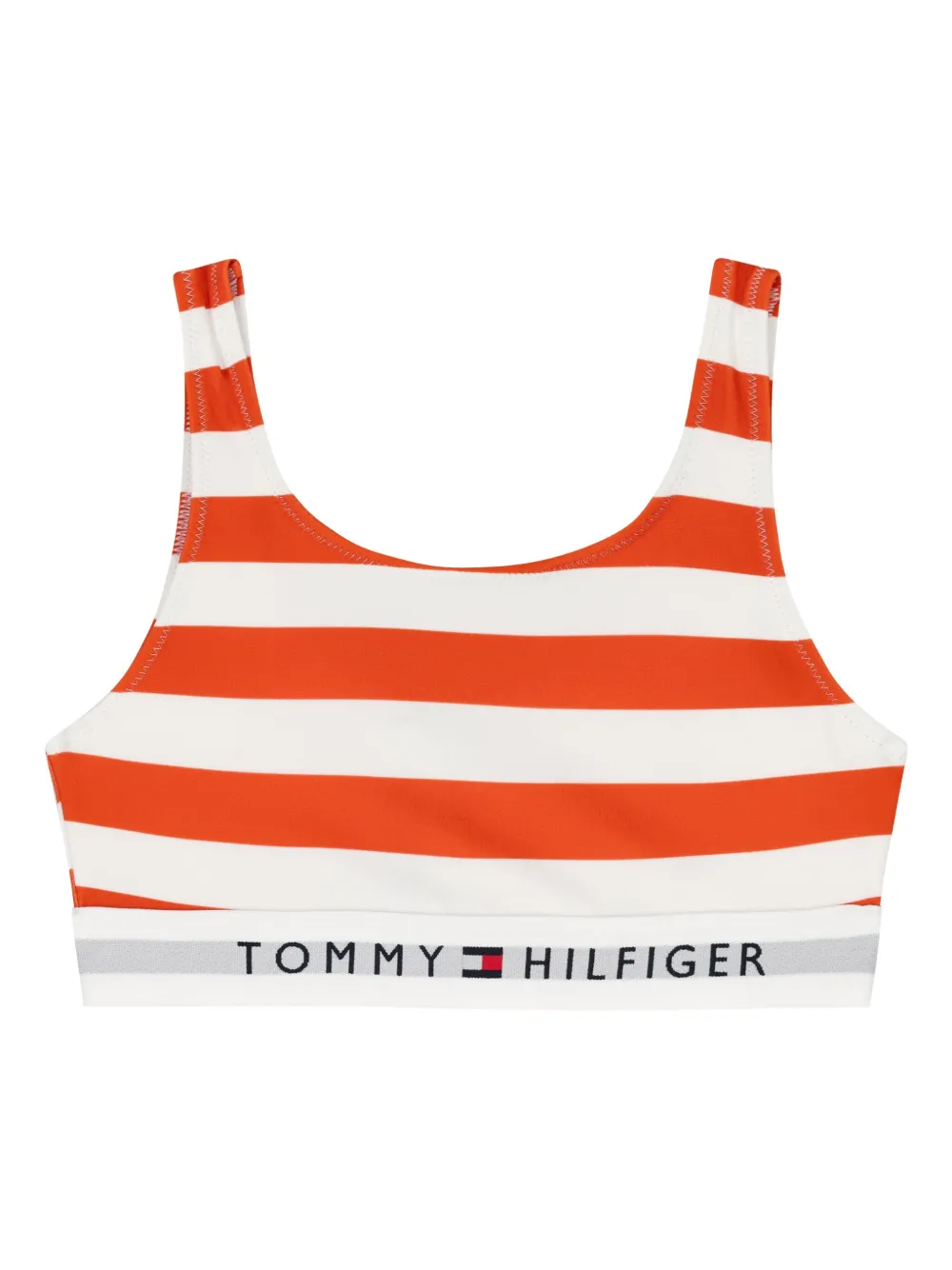oranje brede schouderbandjes gestreept detail elastische tailleband Zwemkleding moet over je eigen kleding worden aangepast.