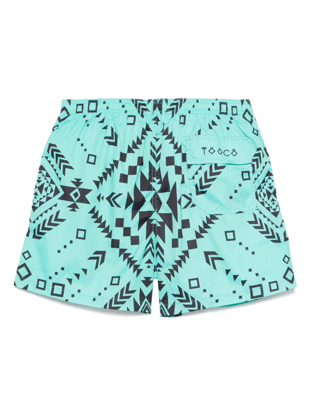 turkoois blauwgroen elastische tailleband met trekkoord twee paspelzakken aan de zijkant klepzak aan de achterkant Zwemkleding moet over je eigen kleding worden aangepast.