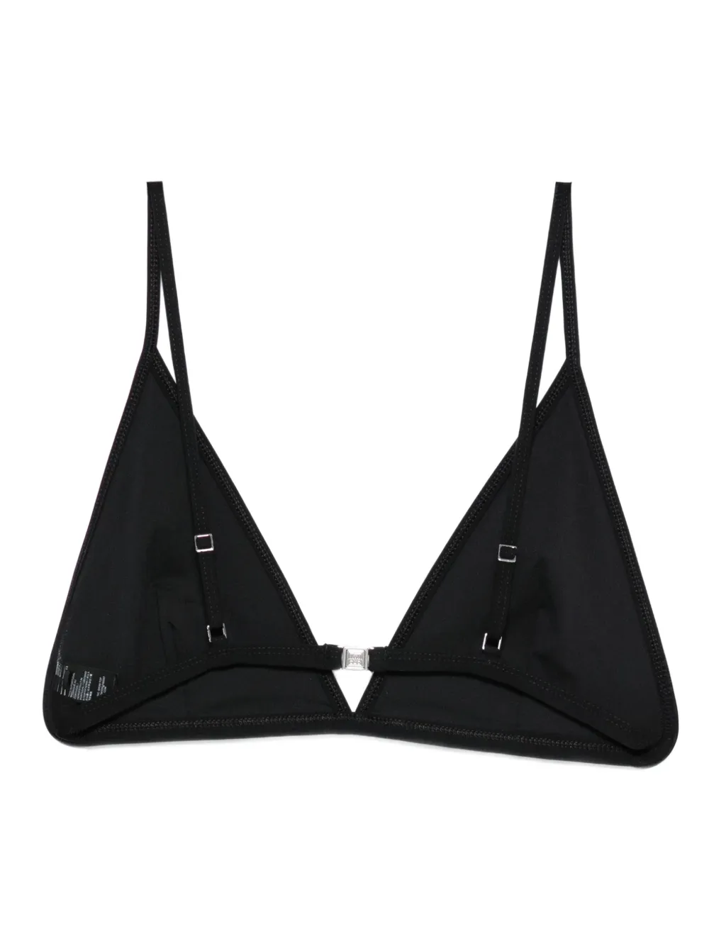 zwart driehoekige vorm gespsluiting dunne bandjes gladde stof minimalistisch design Zwemkleding moet over je eigen kleding worden aangepast.