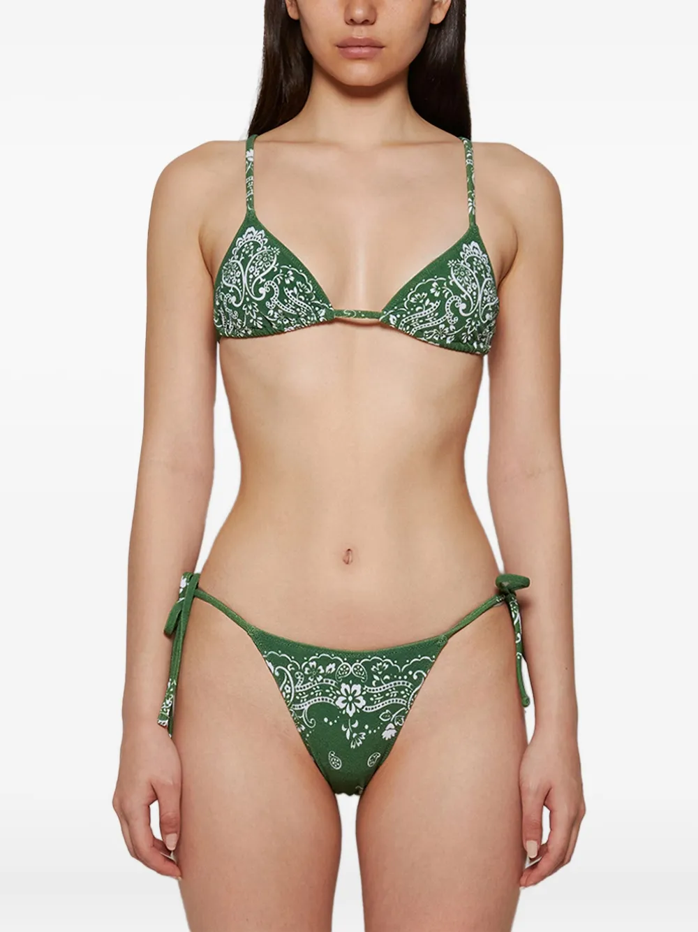 donkergroen paisley-print driehoekige vorm verstelbare bandjes striksluiting Zwemkleding moet over je eigen kleding worden aangepast.