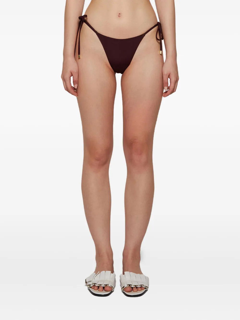 donkerbruin geribbelde textuur gestrikte zijkanten low-rise Zwemkleding moet over je eigen kleding worden aangepast.