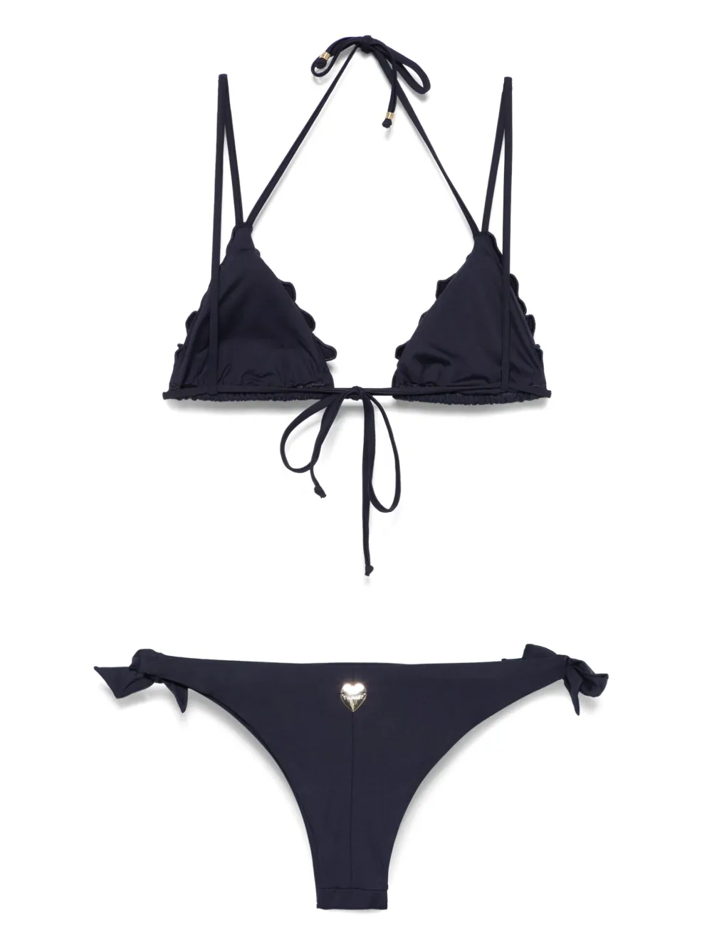 marineblauw halternek striksluiting bikinibroek met striksluiting aan de zijkant triangel cup Zwemkleding moet over je eigen kleding worden aangepast.