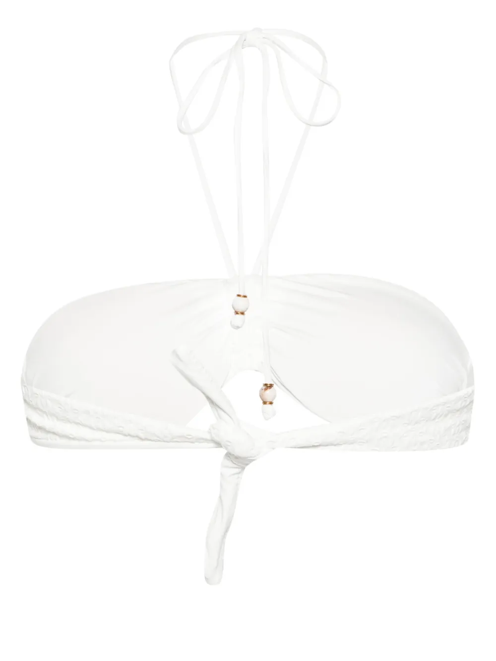 wit stretch design jersey textuur opengewerkte details kralendetail uitneembare pads volledige voering halternek striksluiting striksluiting aan de achterkant Zwemkleding moet over je eigen kleding worden aangepast.