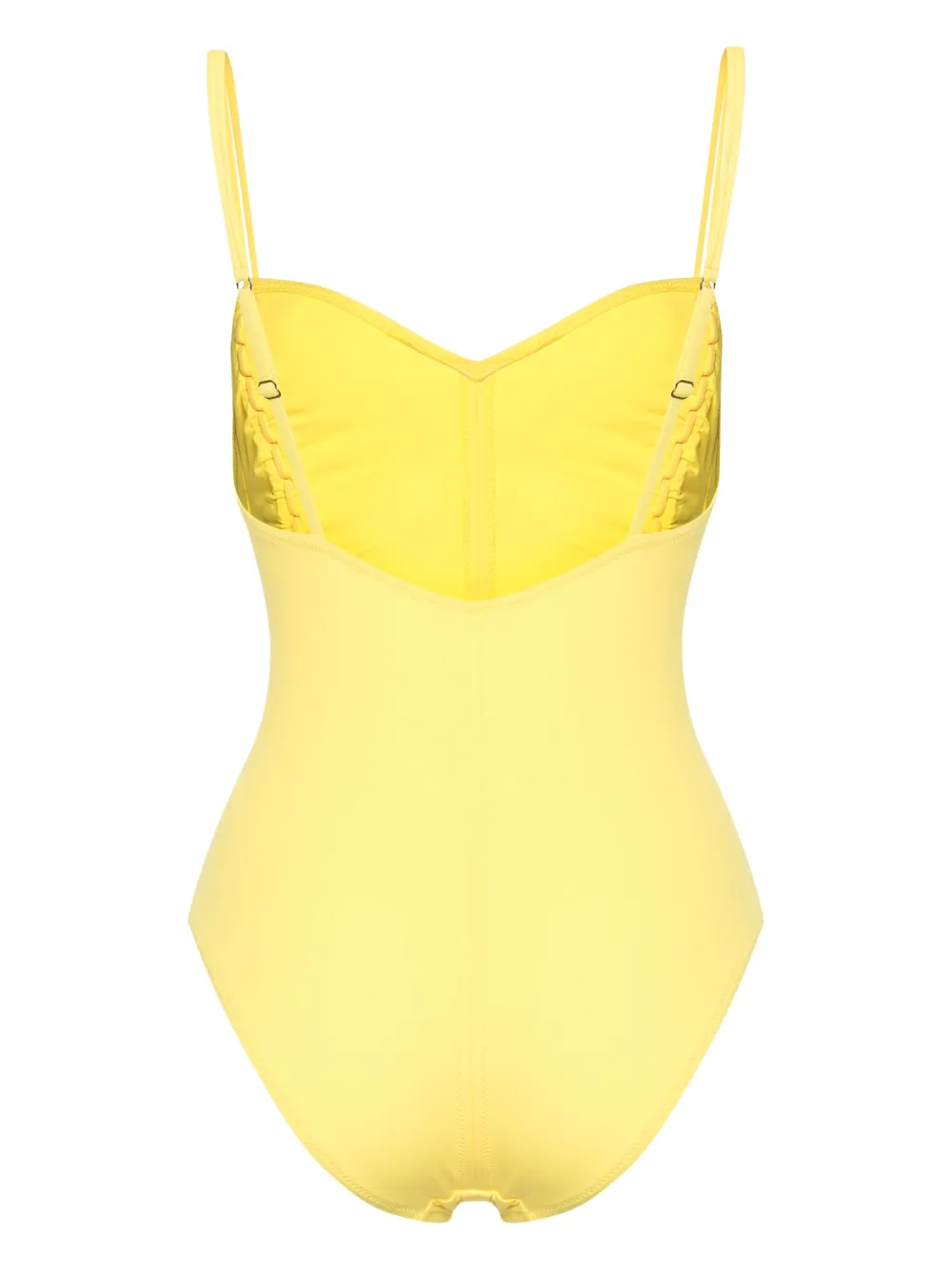 botergeel stretch design body met ruchess sweetheart-hals open rug mouwloos Zwemkleding moet over je eigen kleding worden aangepast.