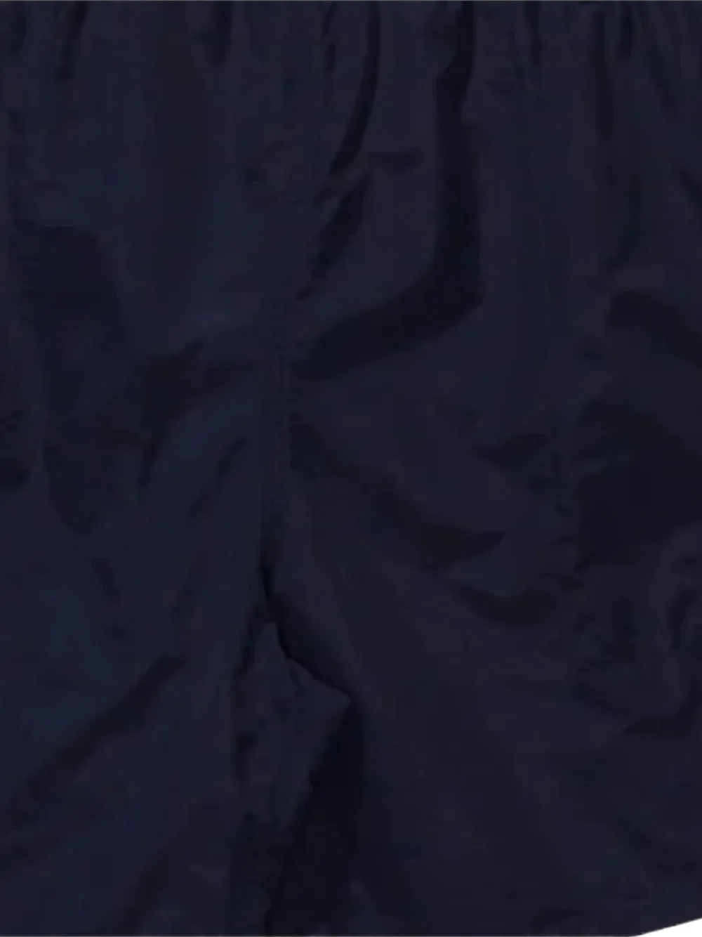 marineblauw elastische tailleband steekzijzakken geborduurd logo rechte pijpen Zwemkleding moet over je eigen kleding worden aangepast.