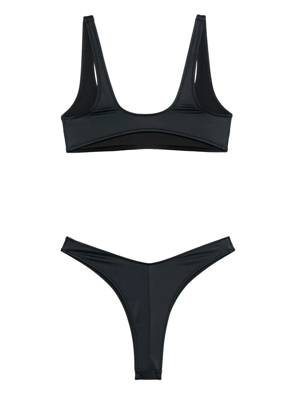 zwart dunne schouderbandjes minimalistisch design hoog uitgesneden slip Zwemkleding moet over je eigen kleding worden aangepast.