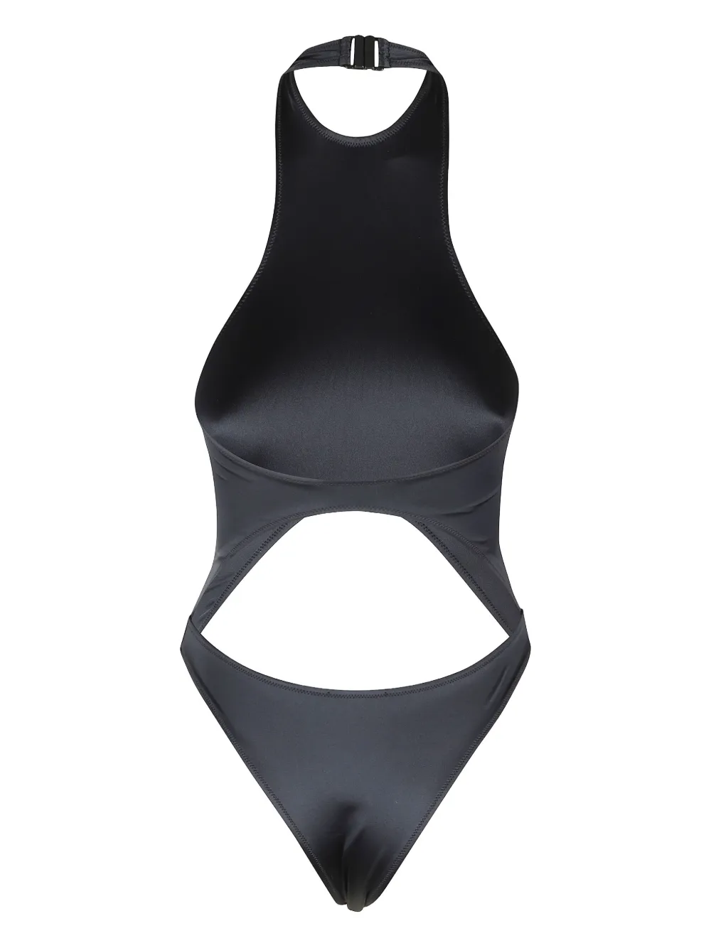 zwart halternek uitgesneden detail mouwloos Zwemkleding moet over je eigen kleding worden aangepast.