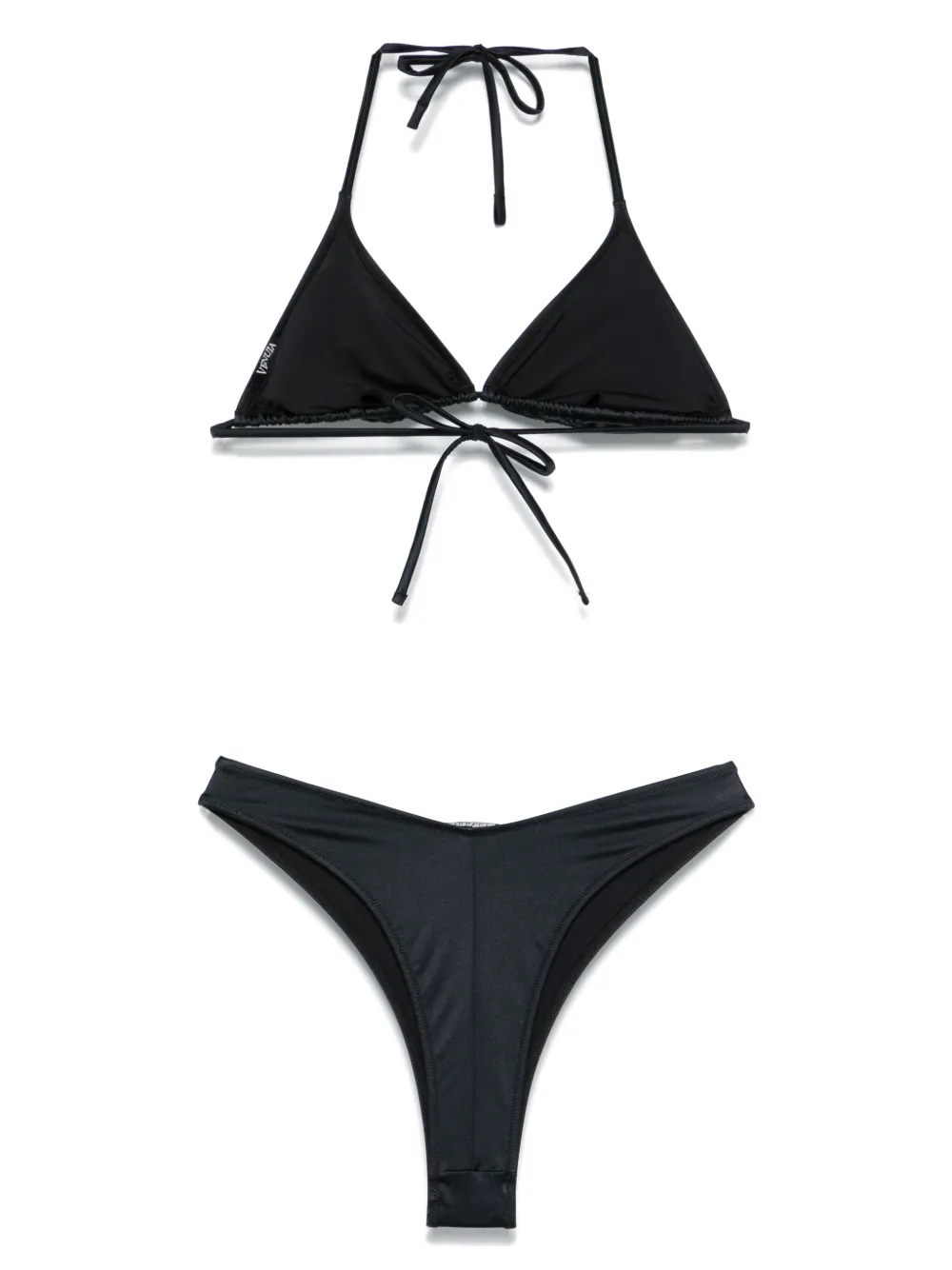 zwart halternek striksluiting striksluiting aan de achterkant klassieke bikinislip Zwemkleding moet over je eigen kleding worden aangepast.