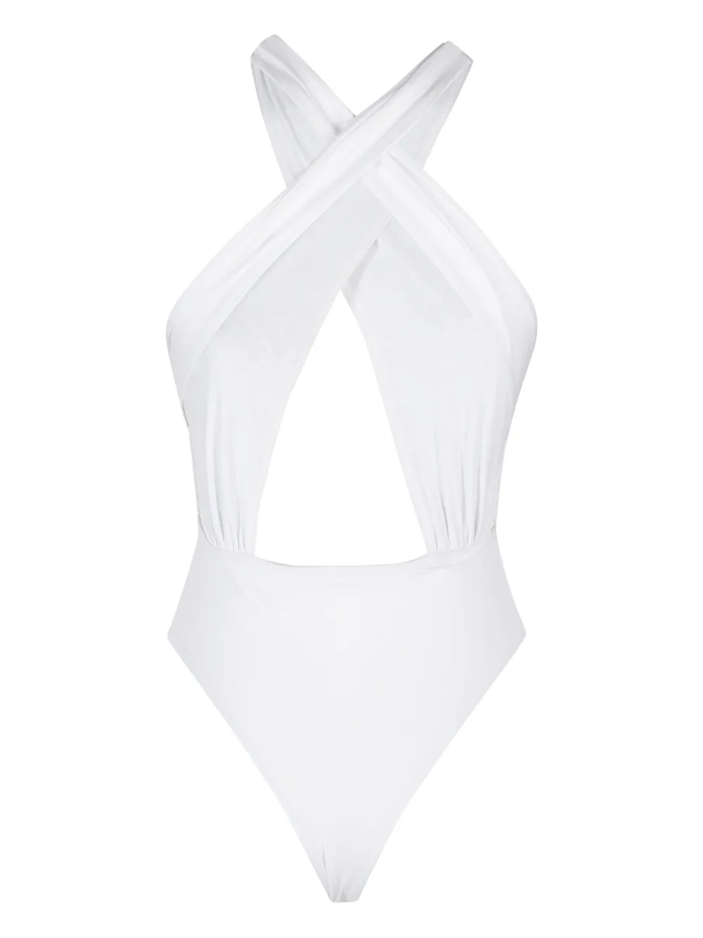 wit verfraaid met bergkristallen uitgesneden detail open rug Zwemkleding moet over je eigen kleding worden aangepast.
