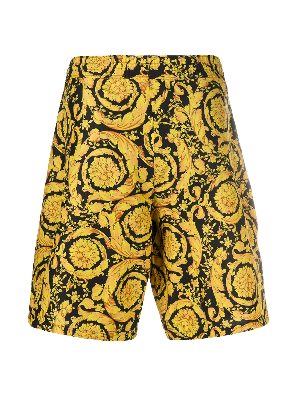 Zwart gerecycled polyester barokprint trekkoordsluiting knielengte Zwemkleding moet over uw eigen kleding worden aangepast. Doe dit niet als u eenmaal het water in springt