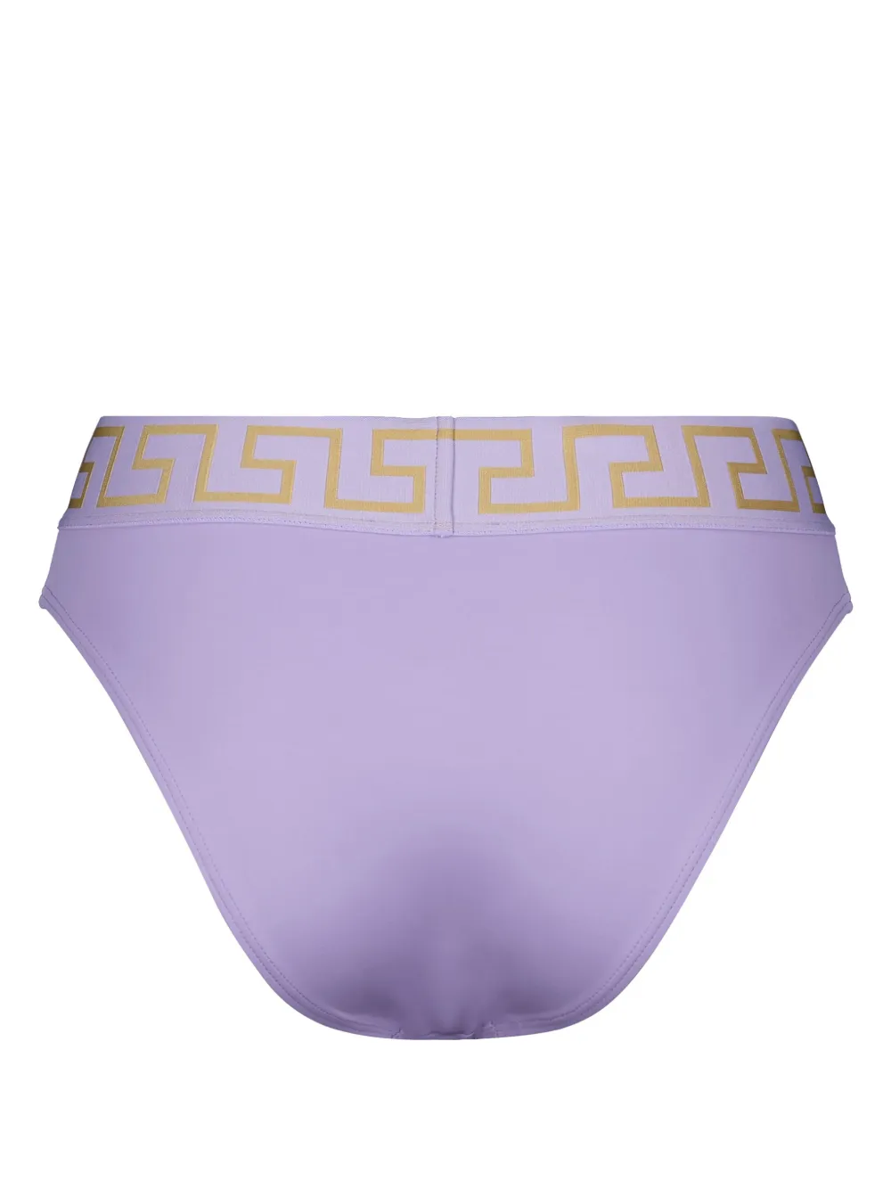lila stretch design elastische tailleband met logo kenmerkende Greca details Medusa patroon volledige dekking Zwemkleding moet over je eigen kleding worden aangepast.
