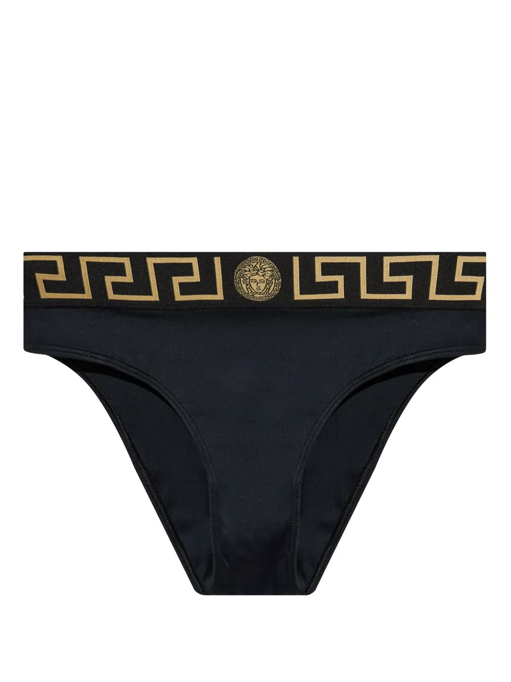zwart/goudkleurig stretch design elastische tailleband met logo high waist hoog uitgesneden Zwemkleding moet over je eigen kleding worden aangepast.