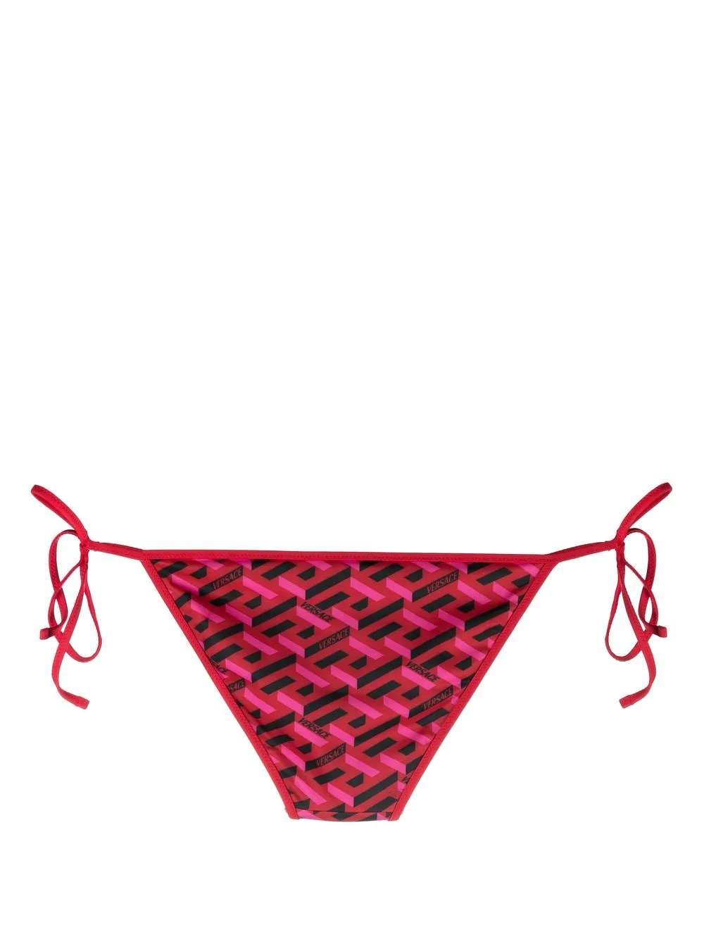Donkerrood, stretch design, all-over logoprint, driehoekige vorm en bikinislip met striksluiting aan de zijkant. Zwemkleding moet over je eigen kleding worden aangepast.. .