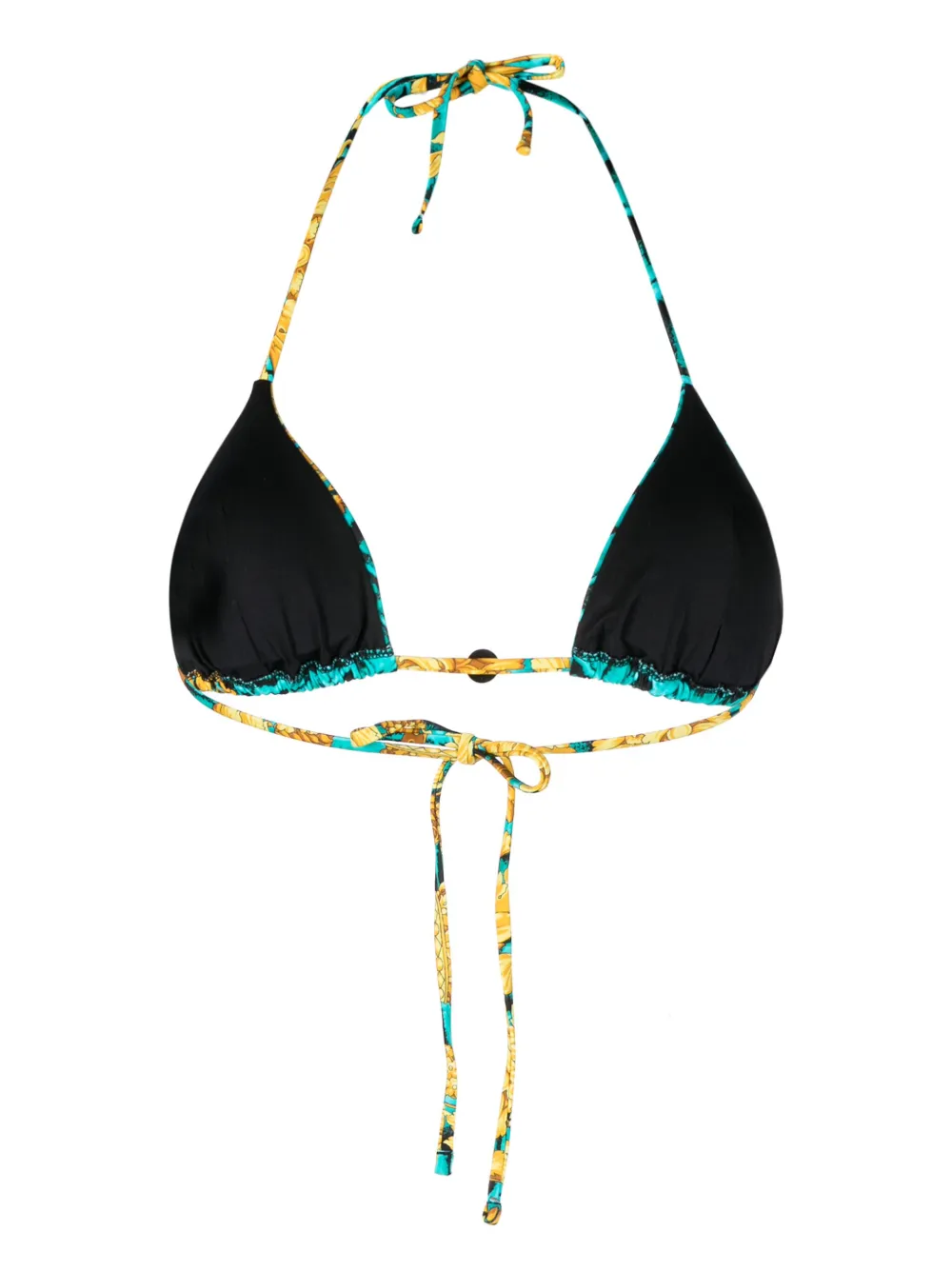 Mintgroen, stretch design, triangel cup, Medusa detail, halternek striksluiting en striksluiting aan de achterkant. Zwemkleding moet over je eigen kleding worden aangepast..