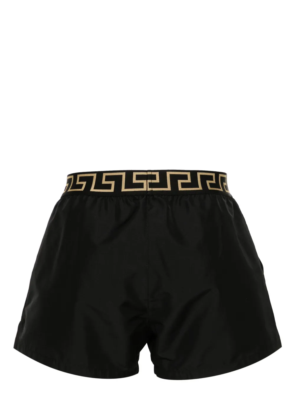 zwart/goudkleurig voelt licht aan elastische logo tailleband met kenmerkende Greca details en Medusa Head patroon twee ingenaaide zijzakken volledige voering slip-on stijl Zwemkleding moet over je eigen kleding worden aangepast.
