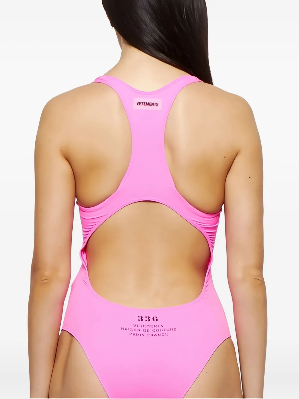 felroze racerback tekst Zwemkleding moet over je eigen kleding worden aangepast.