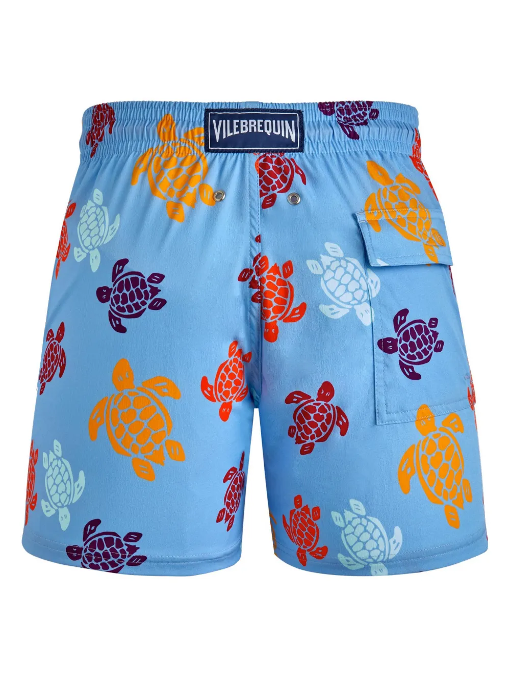 blauw/veelkleurig gerecycled polyamide all-over schildpadprint elastische tailleband twee paspelzakken aan de zijkant logopatch aan de achterkant klepzak aan de achterzijde logolabel aan de binnenkant gedeeltelijk gevoerd dijlengte trekkoordsluiting bij de taille Zwemkleding moet over je eigen kleding worden aangepast. ^