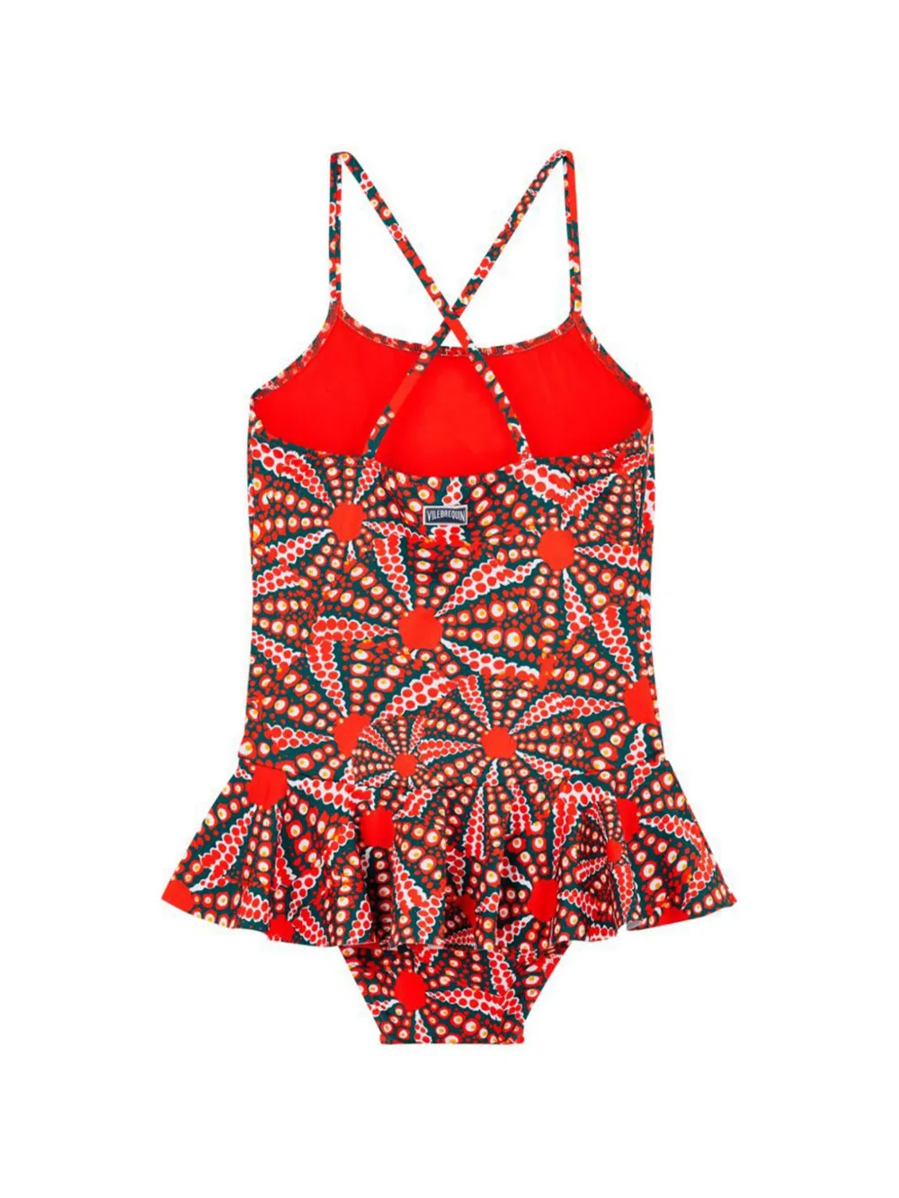 rood/veelkleurig stretch design diepe ronde hals spaghettibandjes ruches gekruiste bandjes aan de achterkant logopatch aan de achterkant Zwemkleding moet over je eigen kleding worden aangepast.