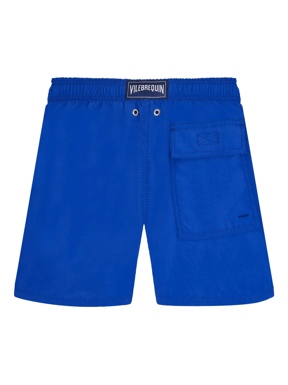 kobaltblauw elastische tailleband met trekkoord twee steekzakken aan de zijkant klepzak achter Zwemkleding moet over je eigen kleding worden aangepast.