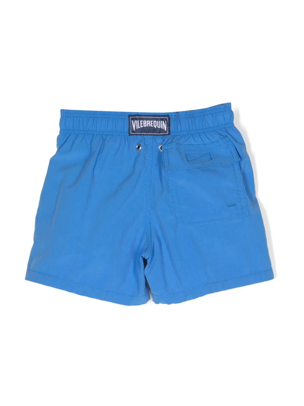 Kobaltblauw, geborduurd logo op de voorkant, logopatch aan de achterkant, geperforeerd detail, elastische tailleband met trekkoord, achterzak met klep en rechte zoom. Zwemkleding moet over je eigen kleding worden aangepast.. .
