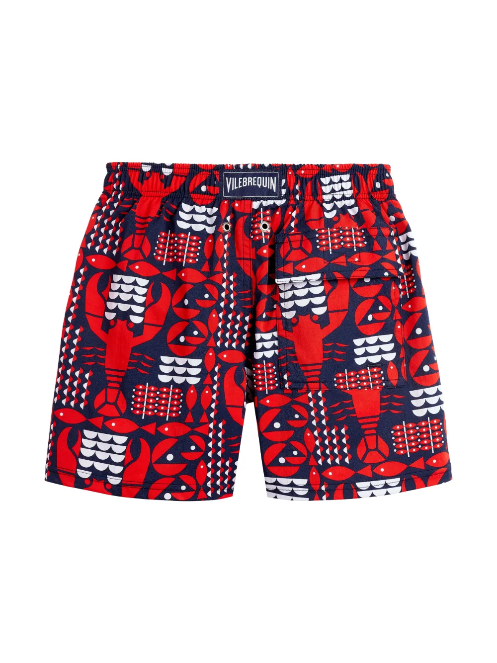rood/wit/blauw gerecycled polyester grafische print logopatch elastische tailleband met trekkoord klepzak achter Zwemkleding moet over je eigen kleding worden aangepast.