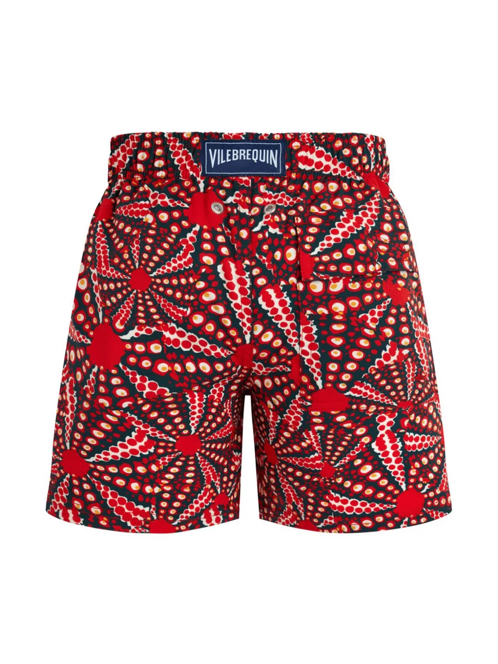 rood/veelkleurig elastische tailleband met trekkoord twee steekzakken aan de zijkant opgestikte zak aan de achterkant opgestikte zak aan de achterkant Zwemkleding moet over je eigen kleding worden aangepast.