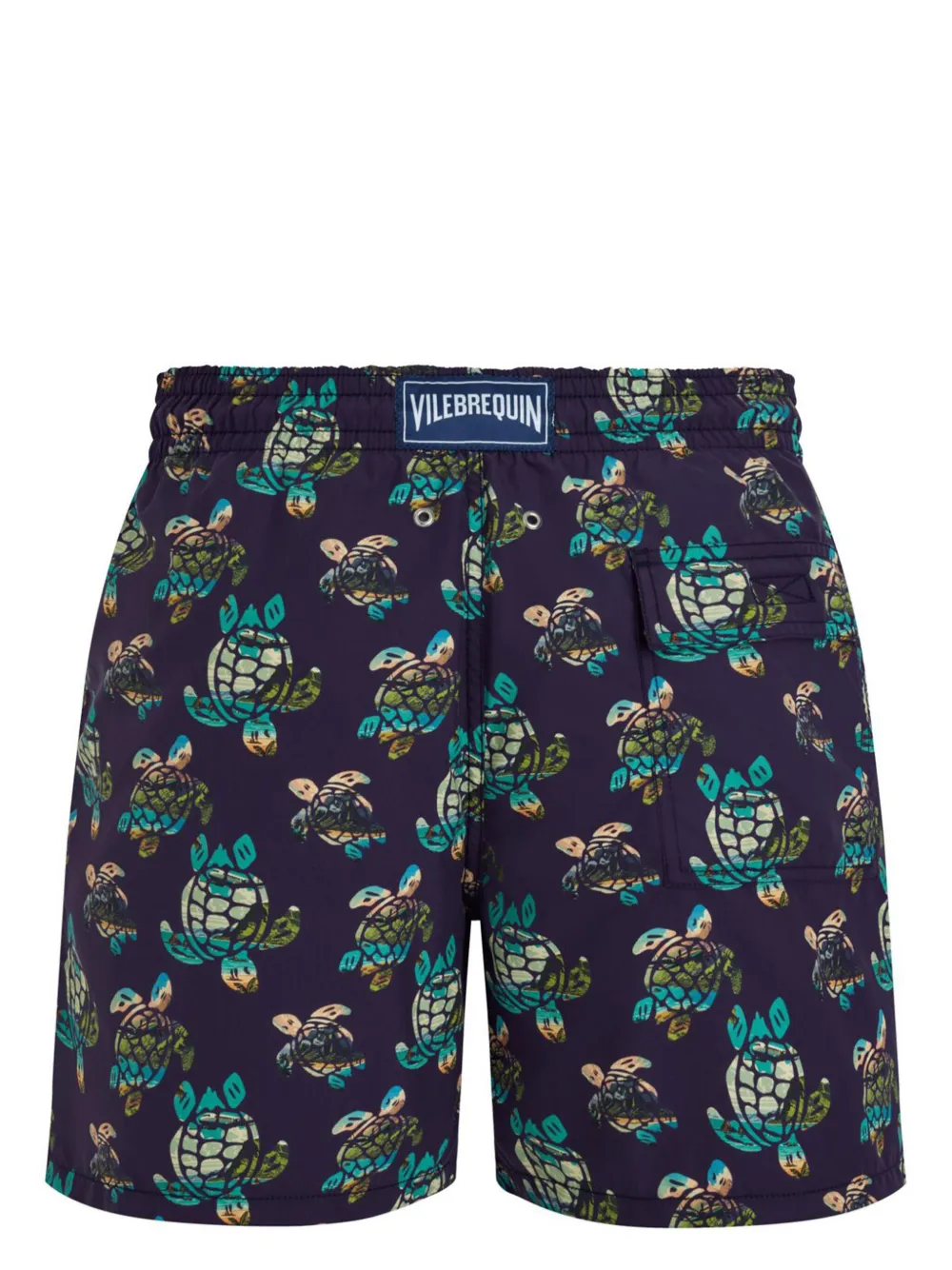 donkerblauw/veelkleurig gerecycled polyamide elastische tailleband met trekkoord all-over grafische print twee steekzakken aan de zijkant logopatch aan de achterkant klepzak aan de achterzijde Zwemkleding moet over je eigen kleding worden aangepast.