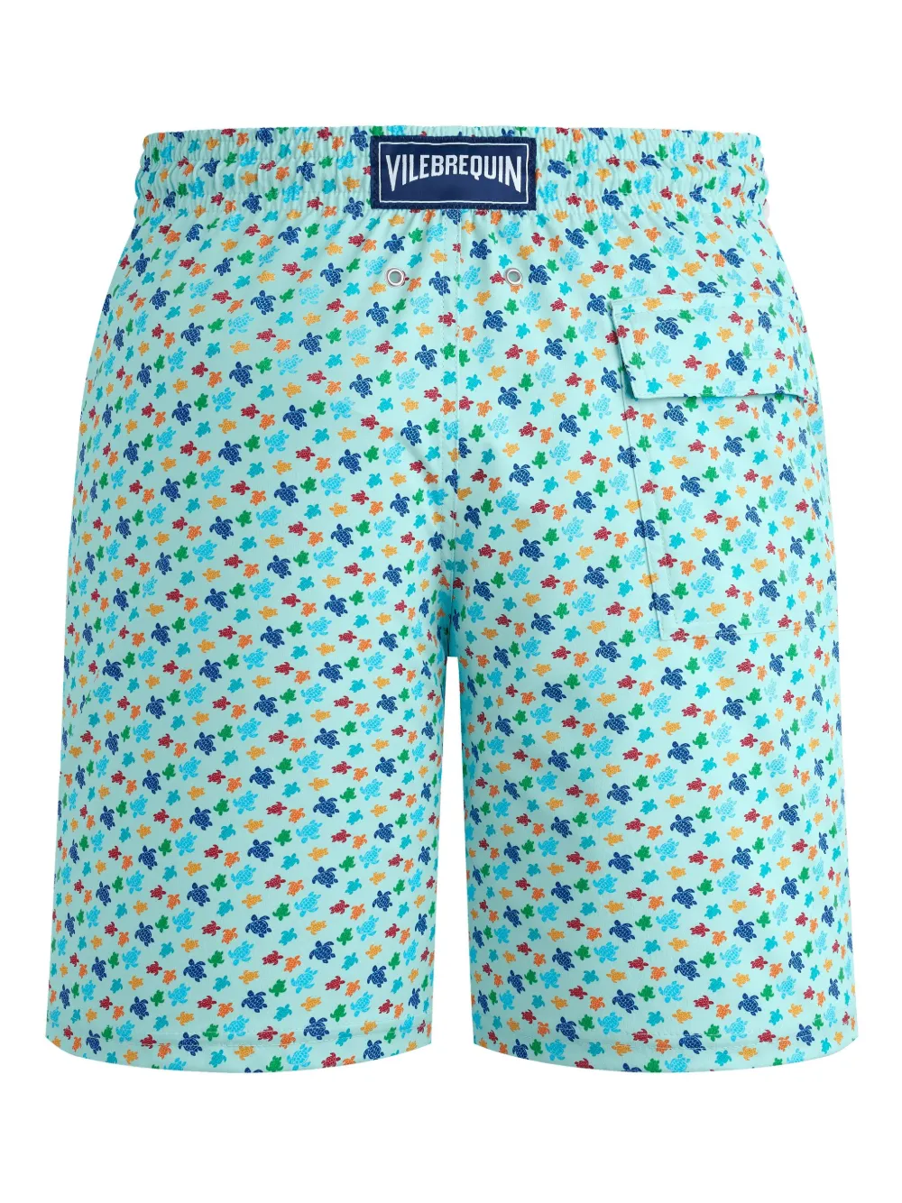 aqua blauw elastische tailleband met trekkoord twee ingenaaide zijzakken klepzak aan de achterkant Zwemkleding moet over je eigen kleding worden aangepast.
