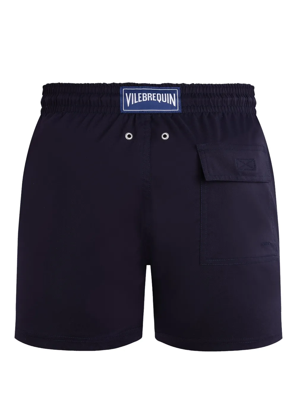marineblauw elastische tailleband met trekkoord twee ingenaaide zijzakken klepzak aan de achterkant Zwemkleding moet over je eigen kleding worden aangepast.
