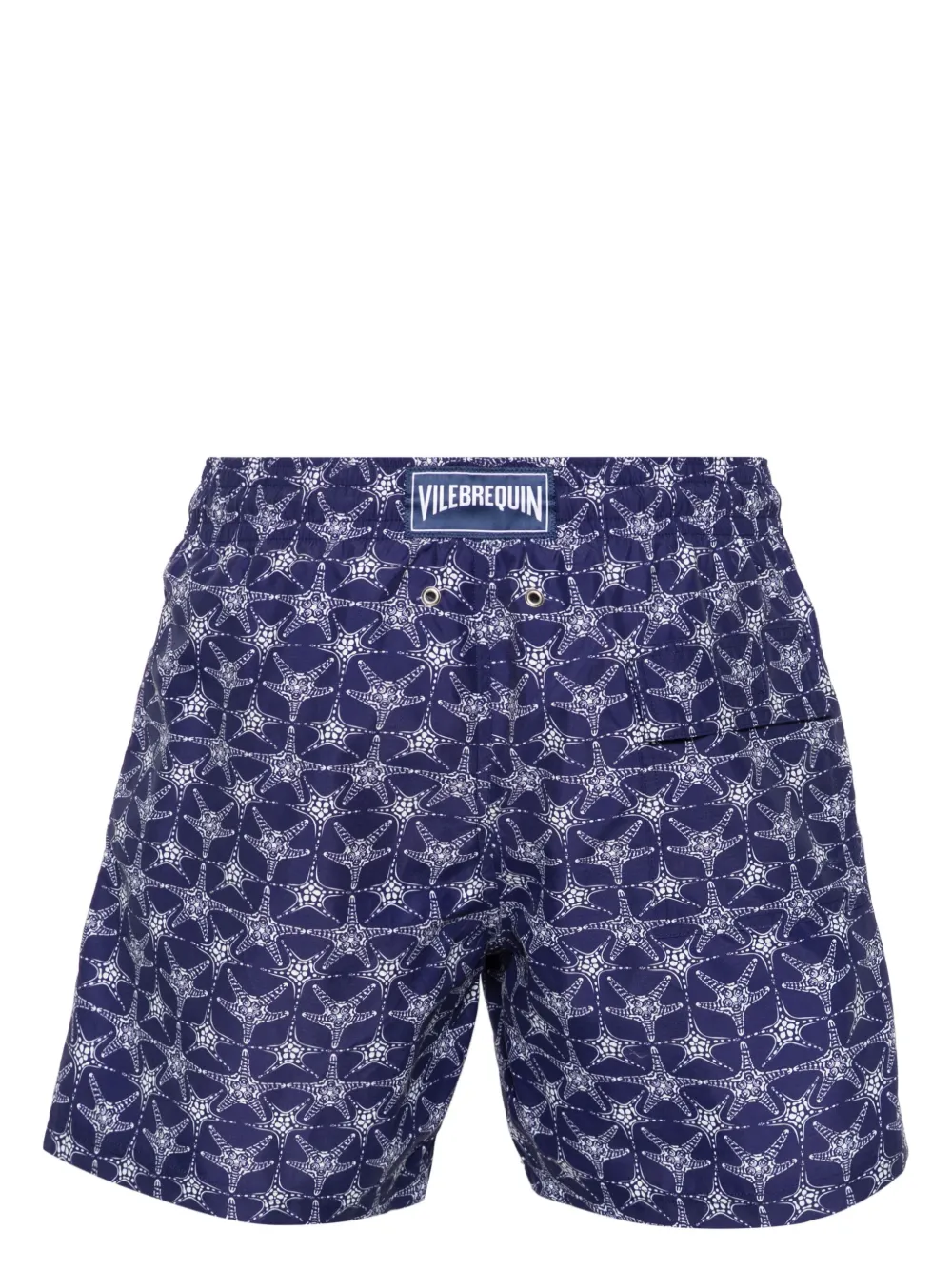 marineblauw gerecycled polyamide zeesterprint elastische tailleband twee steekzakken aan de zijkant klepzak aan de achterzijde logolabel inwendige mesh slip trekkoordsluiting Zwemkleding moet over je eigen kleding worden aangepast.