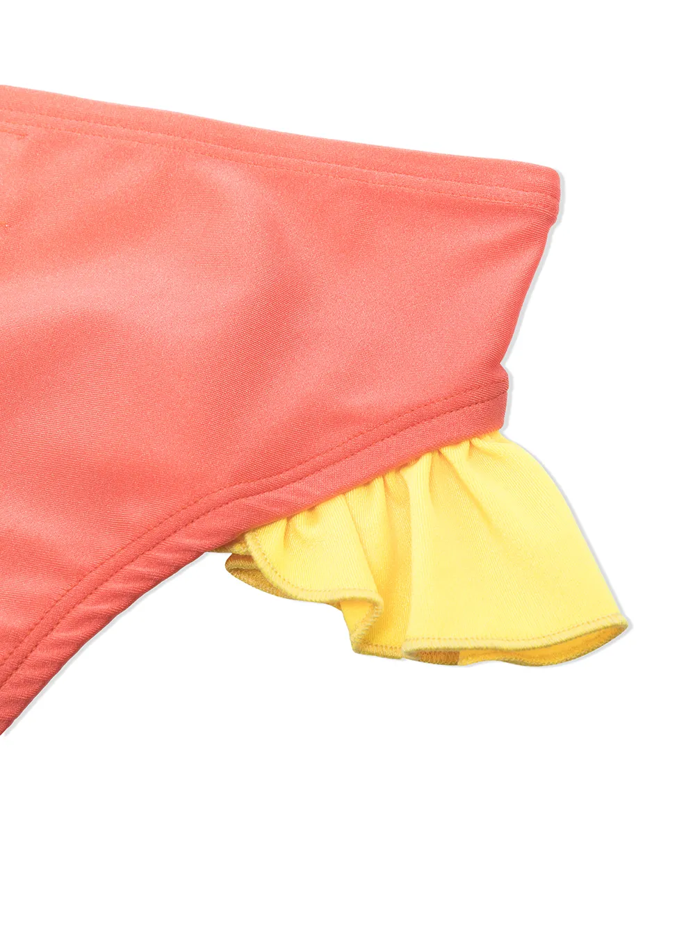 Ruche details, vierkante hals, mouwloos en elastische tailleband. Wij verzoeken je om zwemkleding over je eigen ondergoed aan te passen..