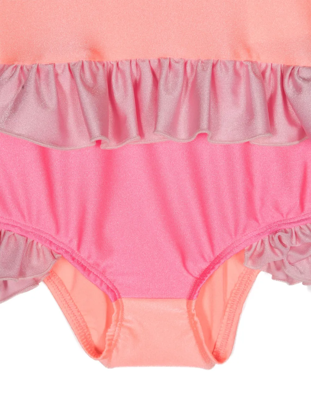 koraal roze/lichtroze/schokkend roze stretch design design met colourblocking metallic glans ruches details vierkante hals spaghettibandjes Zwemkleding moet over je eigen kleding worden aangepast.