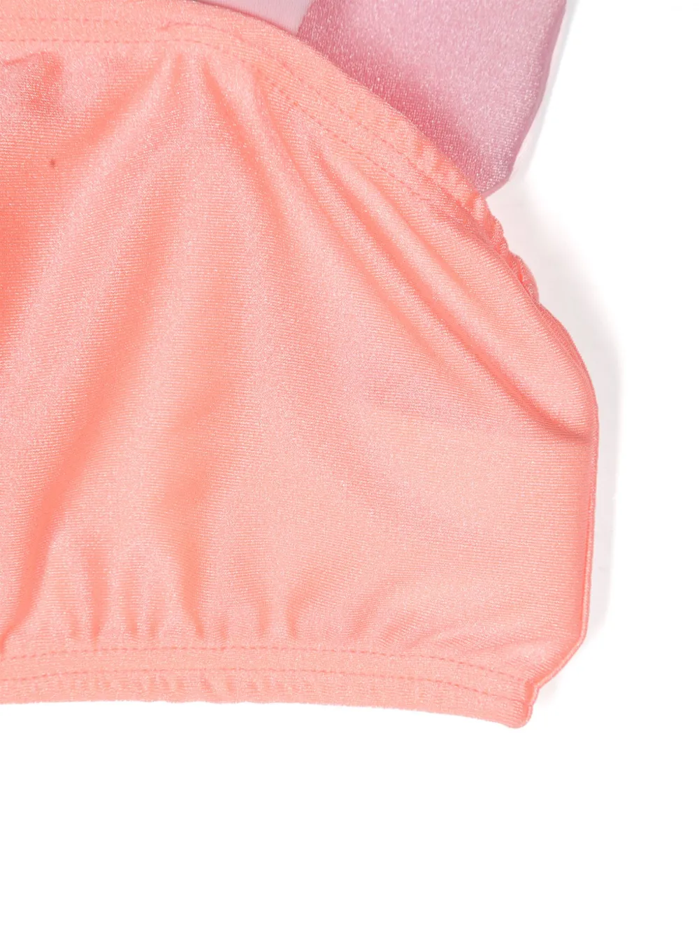 koraal roze/licht roze/paars stretch design design met colourblocking metallic glans set van tweeTop: gewelfde afwerking vierkante hals brede schouderbandjes elastische bandBroek ruches details contrasterende zijvlakken Zwemkleding moet over je eigen kleding worden aangepast.