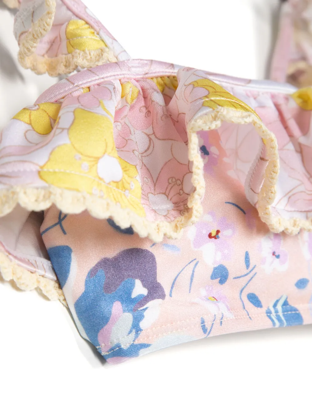lichtroze/veelkleurig stretch design bloemenprintTop: ruches details brede schouderbandjes vierkante halsBroek high waist Zwemkleding moet over je eigen kleding worden aangepast.