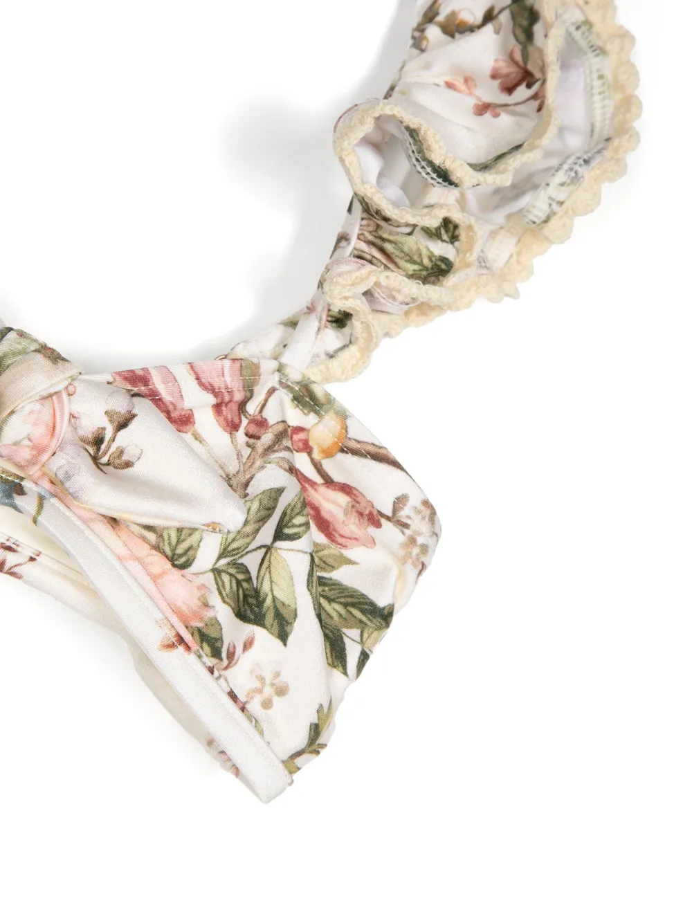 crèmewit/veelkleurig stretch design bloemenprint gehaakte afwerking strikdetail verstelbare schouderbandjes klassieke bikinibroek Zwemkleding moet over je eigen kleding worden aangepast.