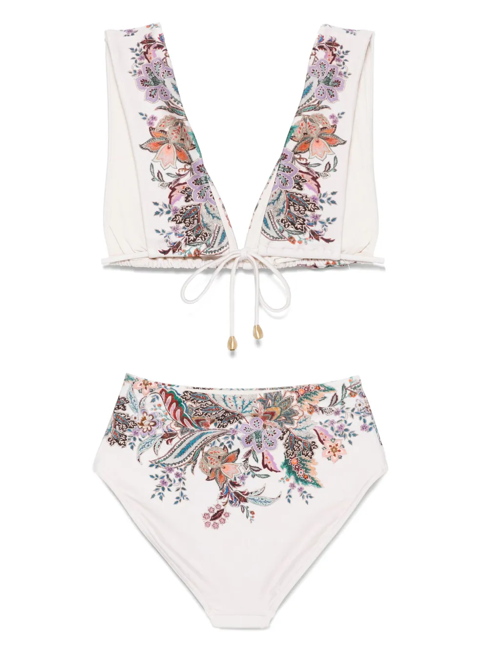 amandelbeige striksluiting aan de achterkant paisley-print high waist Zwemkleding moet over je eigen kleding worden aangepast.