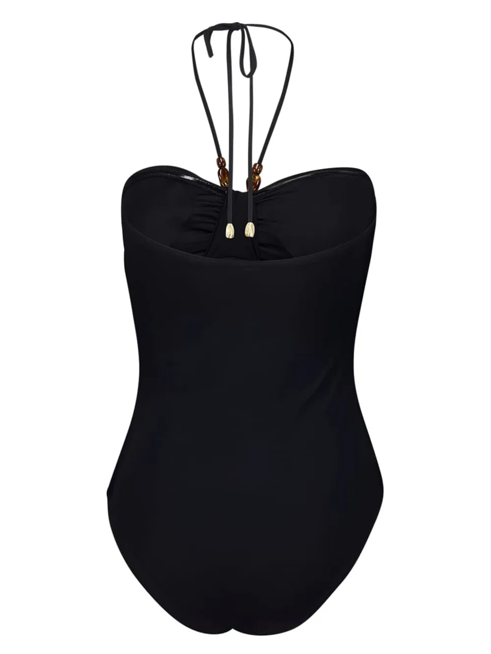 zwart verfraaid met kralen halternek striksluiting sweetheart-hals Zwemkleding moet over je eigen kleding worden aangepast.